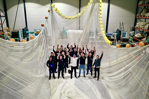 Previously we could never figure it out, I started working on it about 5/6 years ago when I was a sea, just before I sold the companies. I was in Alaska and had just started taking the nets back on a miserable night with storm force conditions, and I watched the waters from the cavitate inside the net, and when it did you could see the meshes opening up and you could see water and fish escaping because the nets get slack, and I remember saying “That’s it!” and my first mate says “Are you ok, Captain?”, and I said, “That’s it, forget about it, that’s it, I know it!” So, we went back to the flume tank, and we put separate chambers on the back side of the net, we reduced the size of the mesh, and we created all these independent pockets and then the water would deadhead, it would go in the chamber and create a cavitation, but a water cavitating and actually the water itself even though this tiny mesh, the water itself would escape a true cavitation of plastic stays inside the net, going from chamber to chamber all the way to the very back section. Once in the back section, every few hours, we’d lift the back section up and empty it and keep going from there.