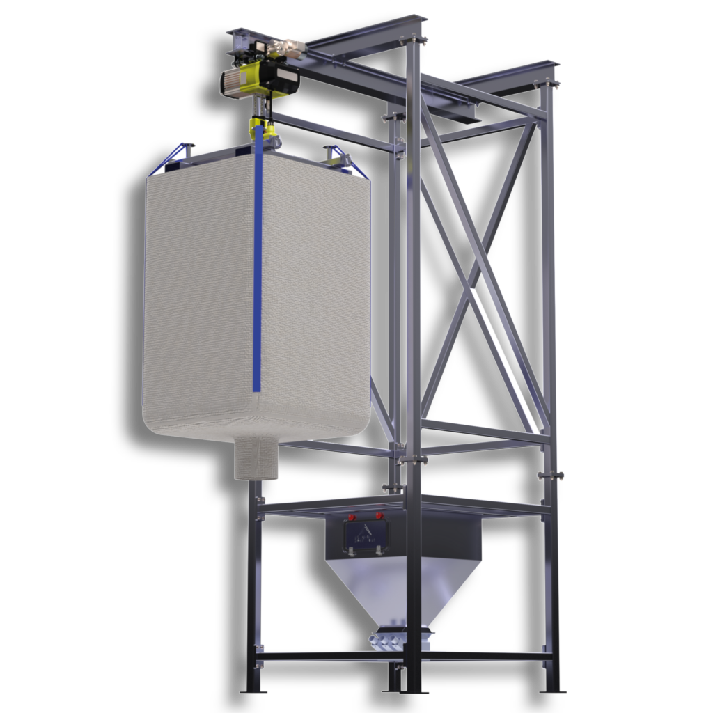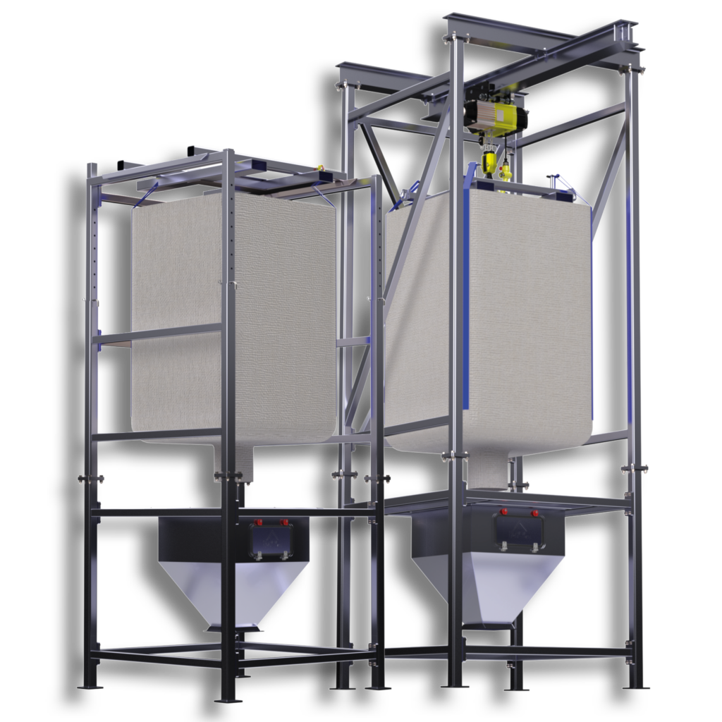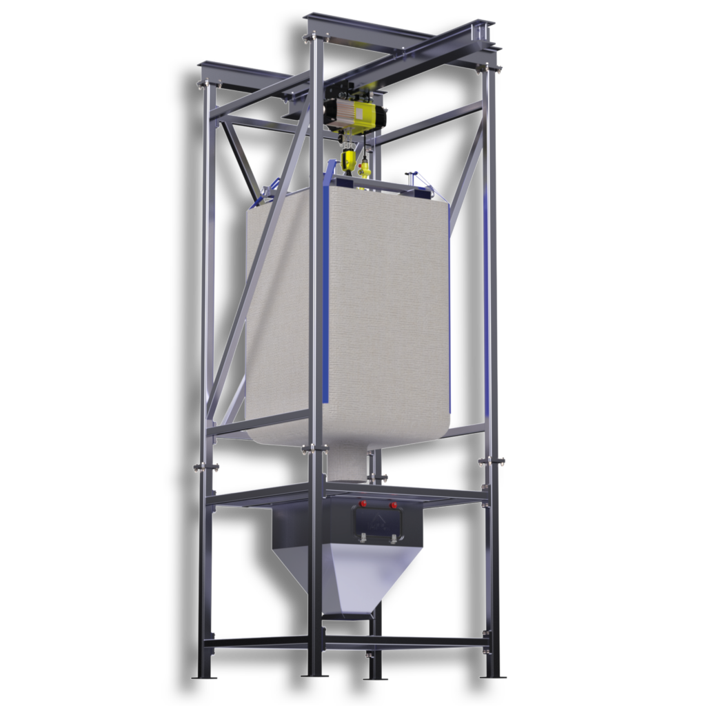 • The SBBLH model features an integrated hoist and lift system, automating the lifting and positioning of heavy bulk bags to reduce manual labour and enhance worker safety.