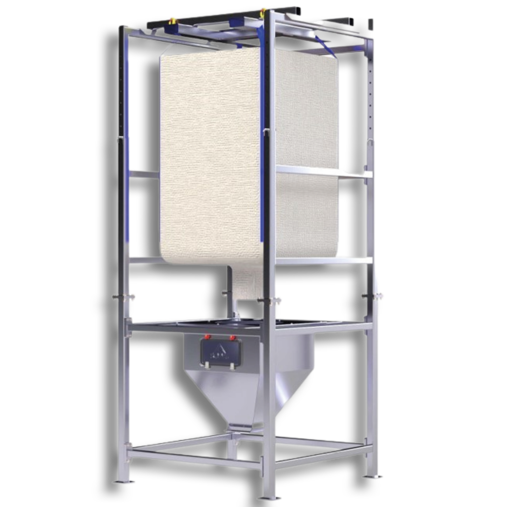 Big Bag Frames are robust, modular support structures specifically designed to hold, lift, and discharge large bulk bags, or FIBCs (Flexible Intermediate Bulk Containers), commonly used for storing and transporting bulk materials like powders, granules, or heavy-duty goods. These frames not only support the weight of the bags but also ensure controlled and efficient discharge of materials, reducing spillage and waste. In industrial settings such as plastics, chemicals, agriculture, and food processing, Big Bag Frames can be customised with features like vibration cradles, bag massagers, blowing systems, dust extractors, and smart sensors for remote monitoring to enhance operational efficiency. By automating material handling processes and improving safety, they help manufacturers reduce manual labour, increase throughput, and maintain a clean working environment.