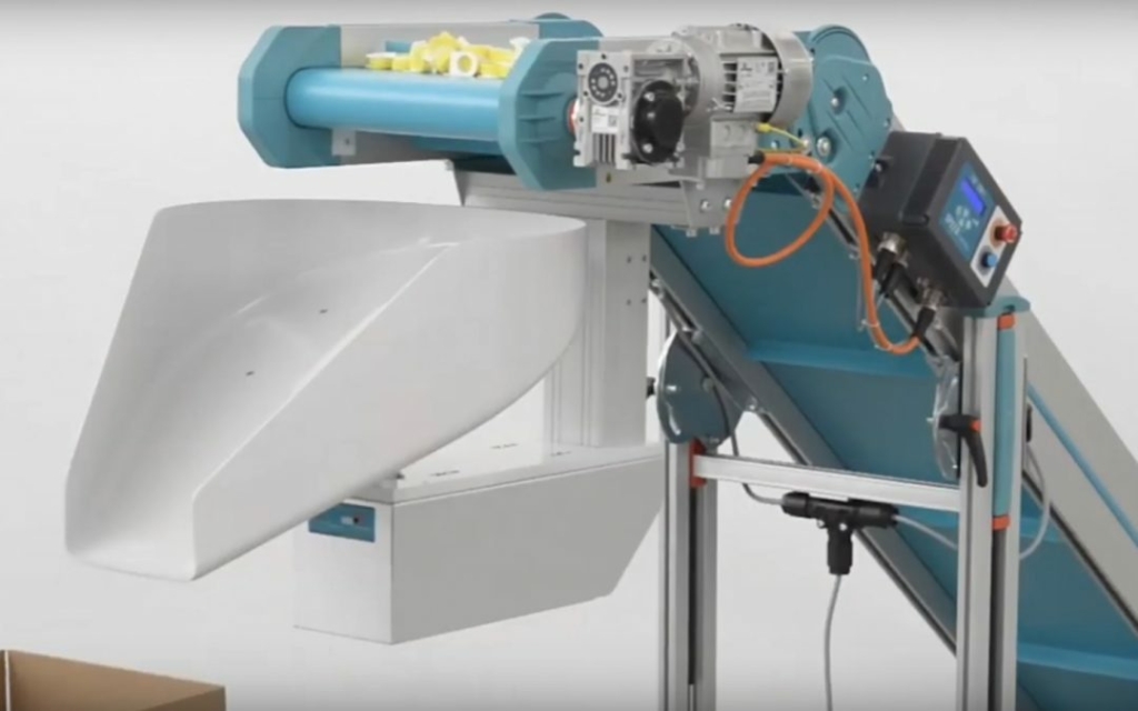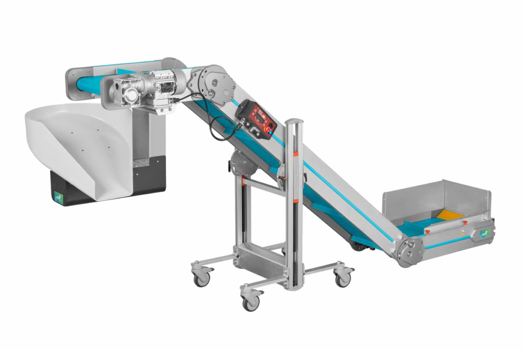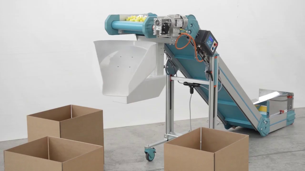 The N-DUCK dispensers was specifically designed to be integrated onto existing MB Conveyors. With a chute rotation range of 360°, in Automatic mode it is possible to set up to 9 unloading points at one time.