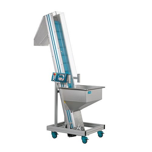 Packaging Elevator Conveyers from MB Conveyors, provide easy movement of product and can lift items to heights required within your process. They are typically used to load bowl feeders and packaging machines. With a choice of standard models or bespoke design to meet your requirements, the Packaging Elevator Conveyors are designed to be robust and reliable and they can also offer an optional FDA set up.