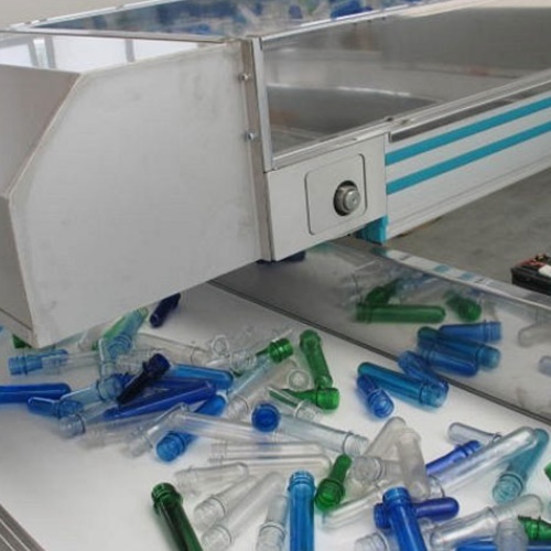 The Soft Drop from MB Conveyors, is a very efficient system devised to eliminate damage and scratching which may be caused to PET Preforms by dropping into storage containers. It is designed to work with all Preform production units currently available in the market.