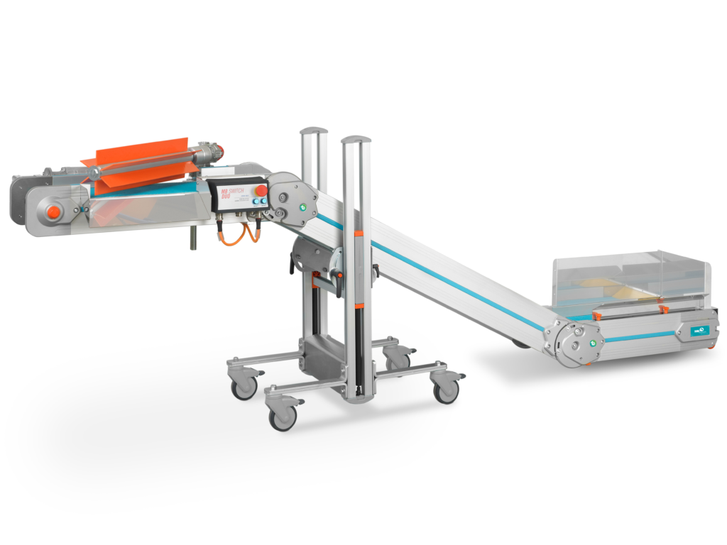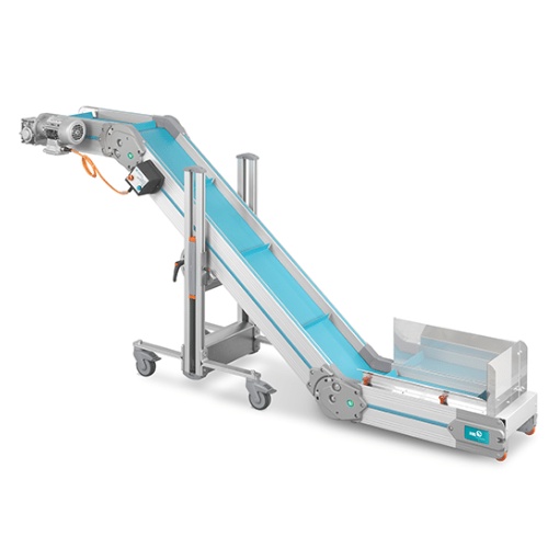 The Swan Neck Conveyors from MB Conveyors, are ideal for moving parts away from a machine, or to form bridges to allow transport over or under warehouse obstructions.
