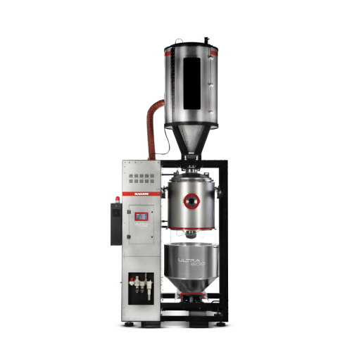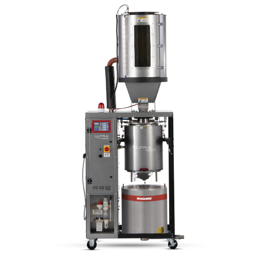 Vacuum dryers, such as the Maguire ULTRA Dryer, are significantly more energy-efficient, using up to 70% less energy than traditional desiccant dryers. Vacuum dryers can also operate at lower temperatures, reducing thermal degradation of the plastic while drying.
