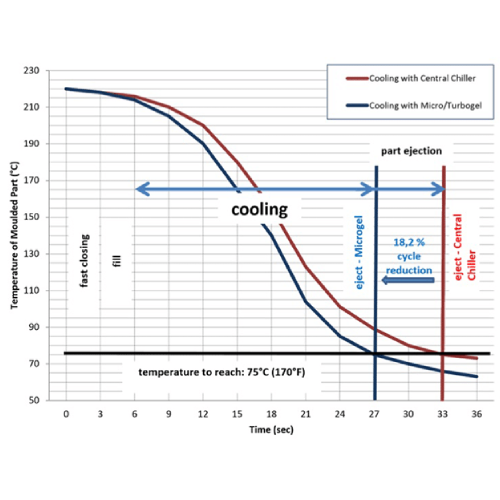 The Microgel, a temperature control unit from Frigel, is a super compact mould cooling unit specifically designed for cycle cooling time reduction. Single and dual zone temperature control units with integral water-cooled chiller and booster pumps are available.